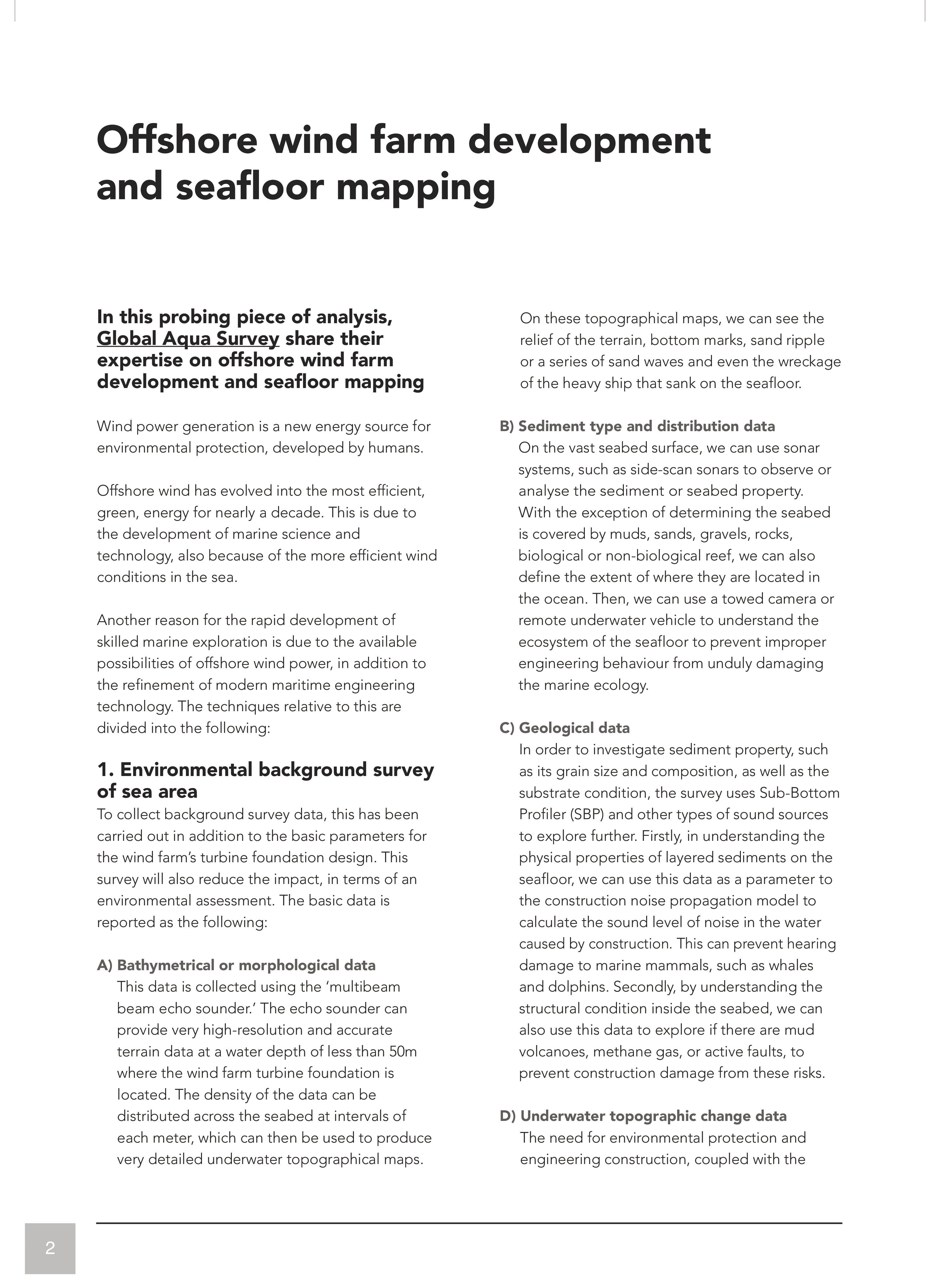 In this probing piece of analysis, Global Aqua Survey share their expertise on offshore wind farm development and seafloor mapping