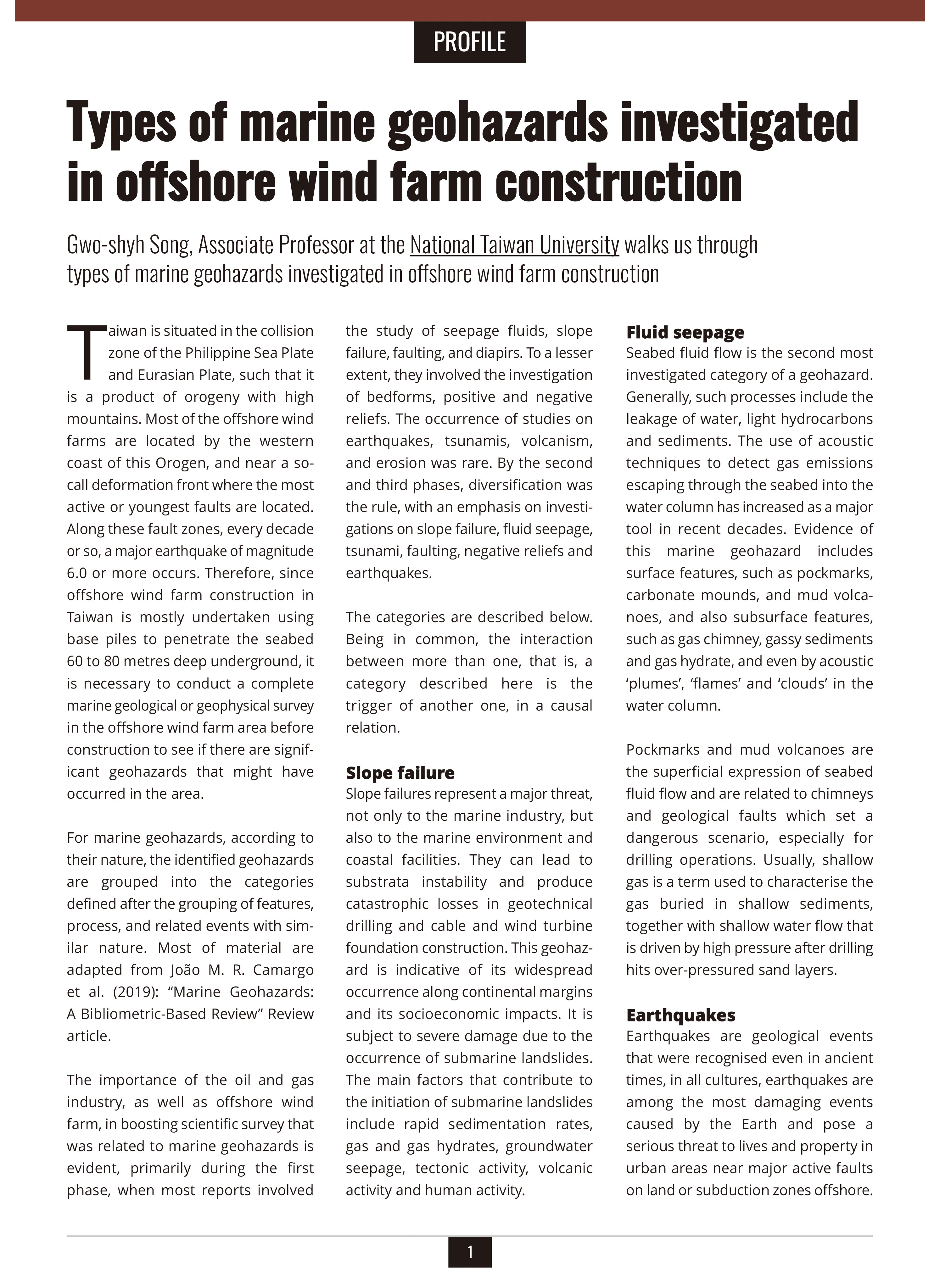 types of marine geohazards investigated in offshore wind farm construction
