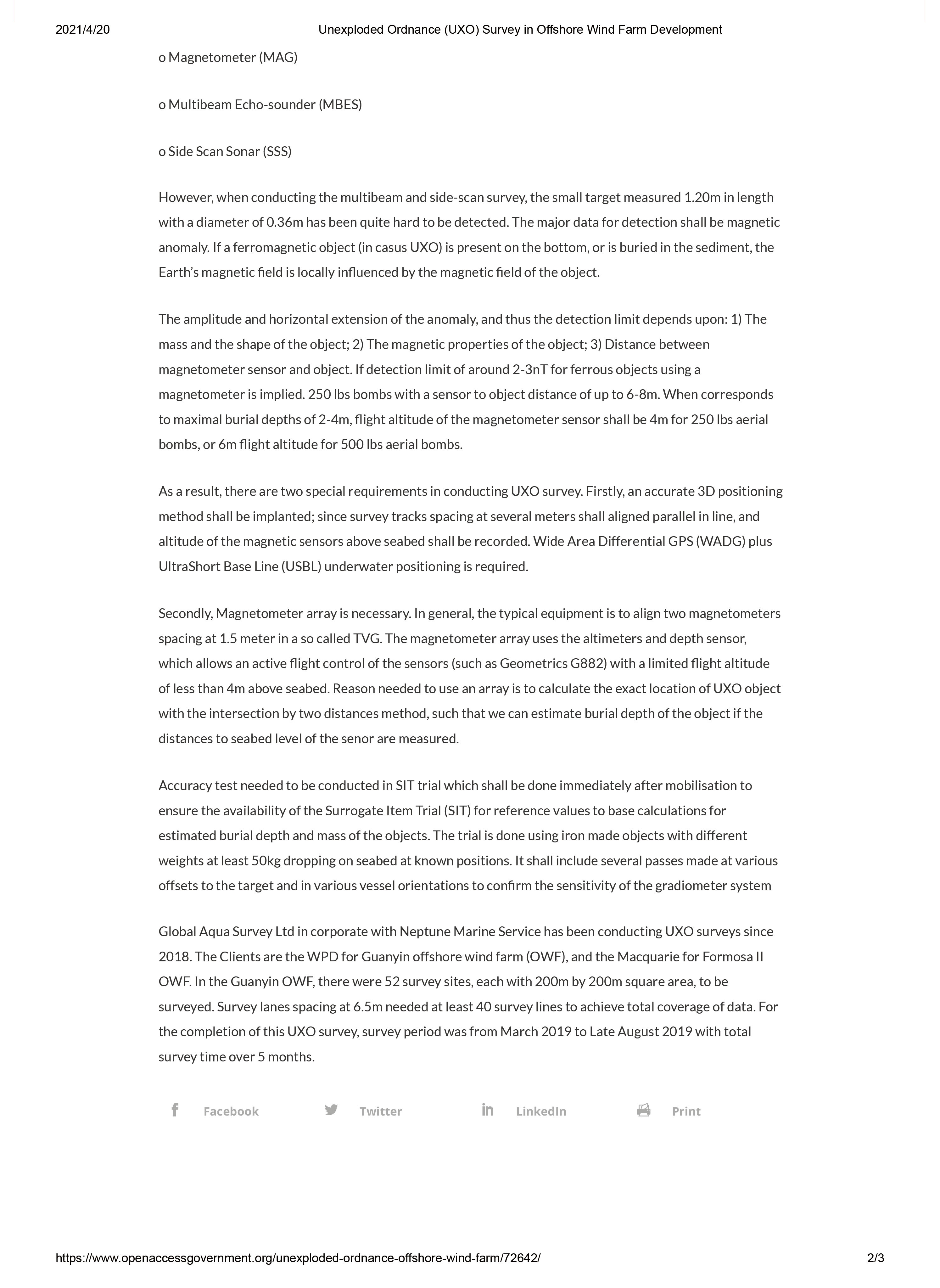 Dr Gwoshyh Song of Global Aqua Survey Ltd discusses the challenges of clearing unexploded ordnance ahead of oʶshore wind farm developments